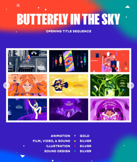 Butterfly in the Sky also won 4 Addy Awards for it’s animated opening title sequence, including a Silver Addy for Best Sound Design!